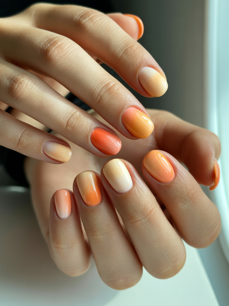 4. Soft Peach & Coral Ombré — Warm, Radiant, and Joyful