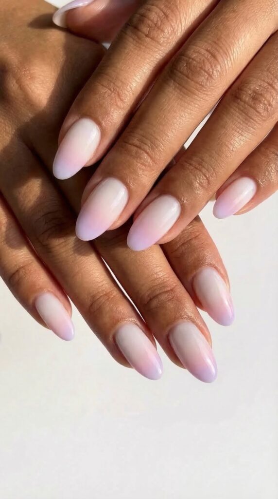 Sheer white nails with pastel ombre tips create a clean, airy look perfect for spring. The sheer base keeps the design light and fresh, while the soft color fade at the tips adds a gentle seasonal touch. This style works well on both short and long nails. It is simple, elegant, and easy to wear.