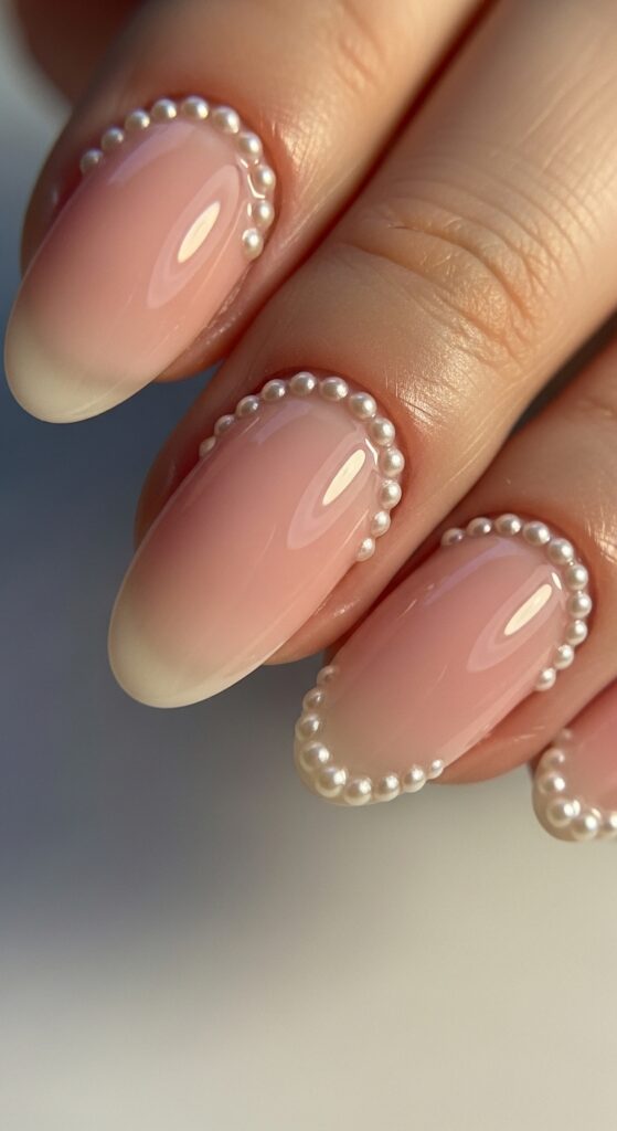 Blush pink nails with pearl embellishments offer a soft, romantic look perfect for spring. The gentle pink base pairs beautifully with the subtle shine of tiny pearls. This combination is simple but elegant, working well for both casual and formal occasions. It adds a delicate, feminine touch to any manicure.