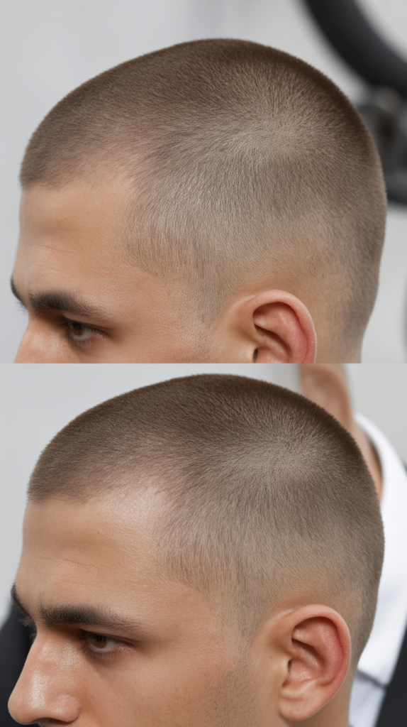 When in doubt, buzz it. The buzz cut is one of the most underrated solutions for thinning hair because it takes the one thing that makes thinning visible — the contrast between thicker and thinner areas — and eliminates it entirely. When every part of your head is the same short length, there are no patches to notice and no sparse areas to draw the eye. Everything just looks clean, even, and intentional.