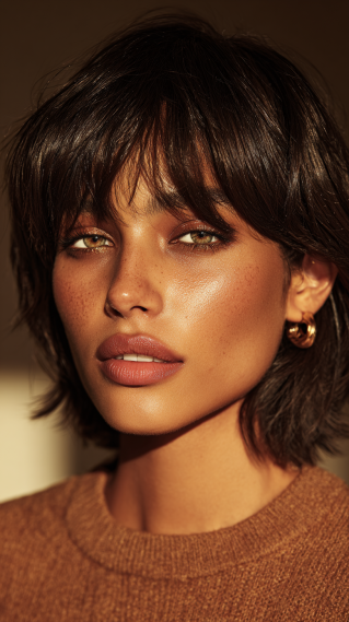 For anyone who loves the idea of a shag but isn’t quite ready to commit to something dramatically short, the shaggy bob is your ideal starting place. It marries the familiar, face-framing structure of a classic bob with the choppy interior layers of a true shag. The length typically sits somewhere between the chin and the collarbone, giving you enough hair to feel secure while the layering does the heavy lifting — literally.